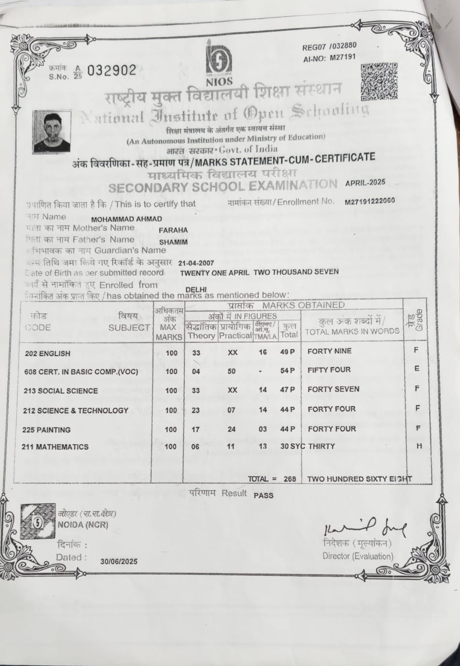 | Exam | Full Marks | Pass Marks | Marks Obtained |