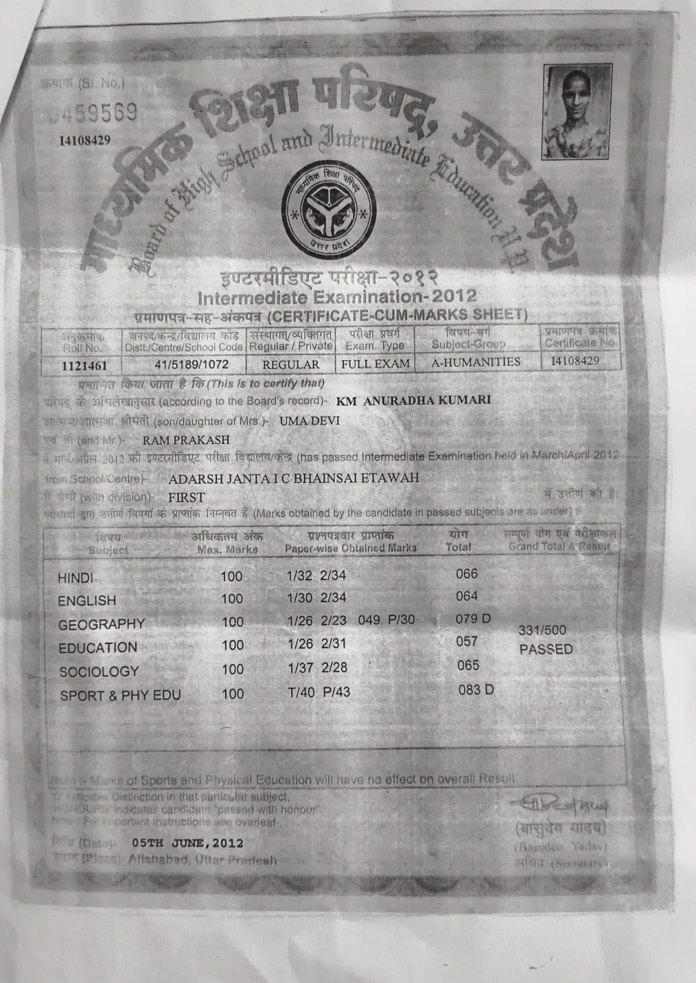 | Exam | Full Marks | Pass Marks | Marks Obtained |