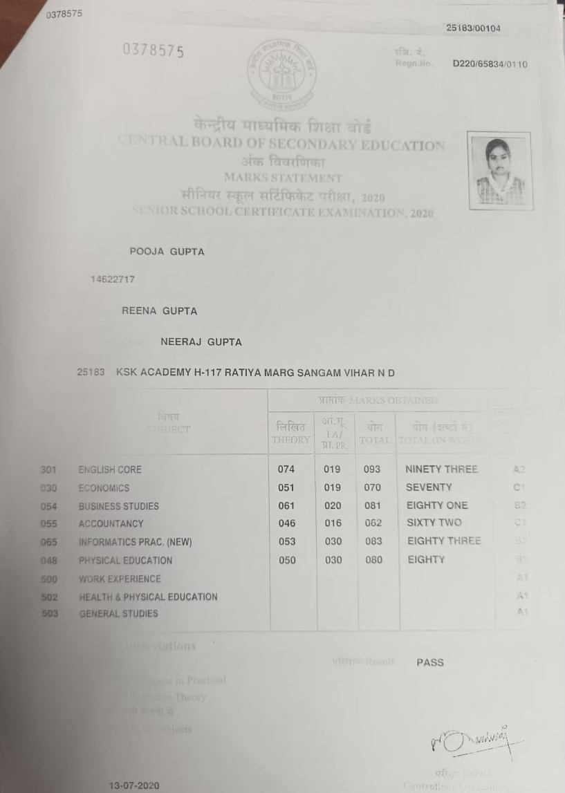 | Exam | Full Marks | Pass Marks | Marks Obtained |