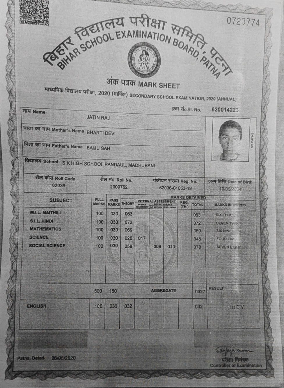 | Exam | Full Marks | Pass Marks | Marks Obtained |