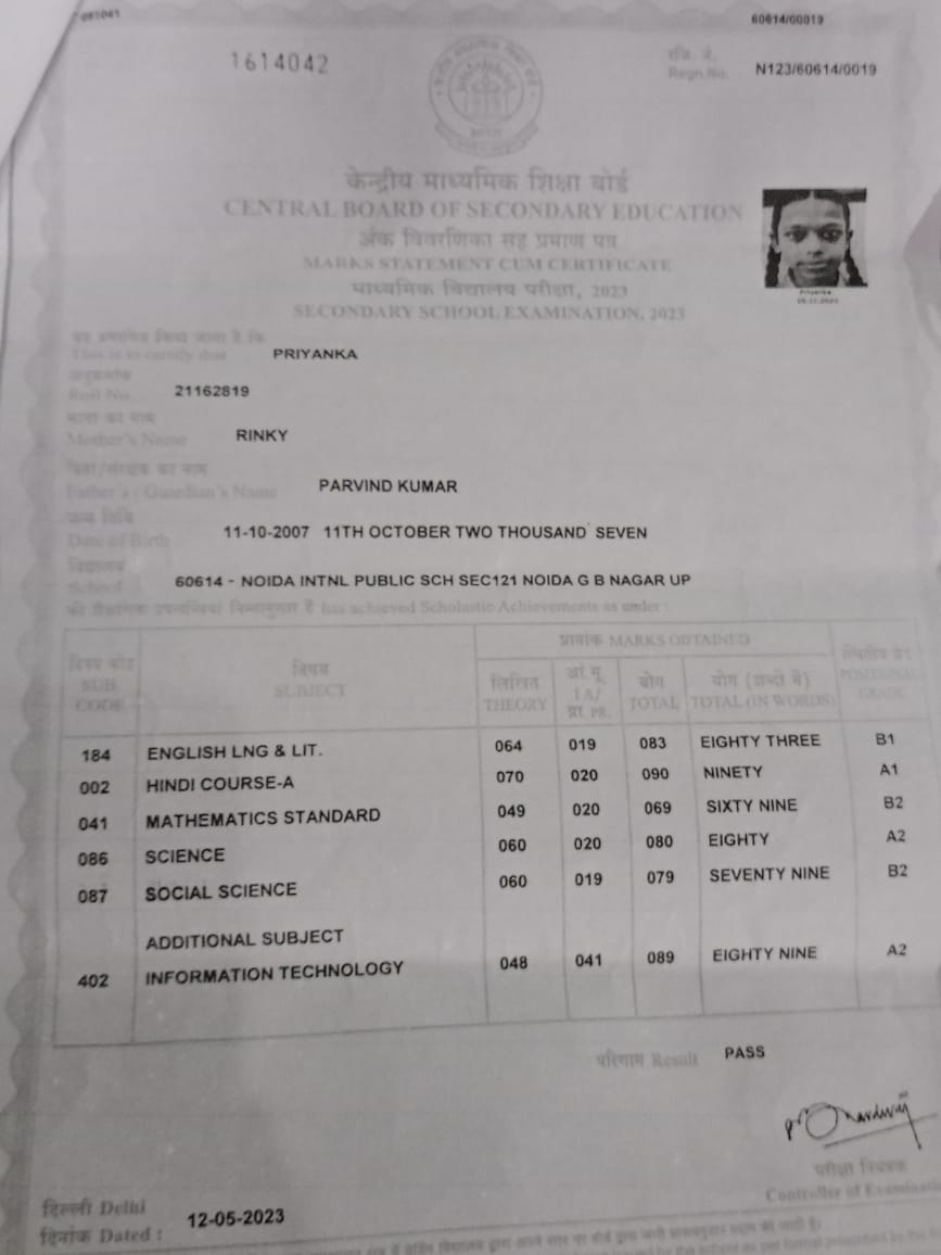 | Exam | Full Marks | Pass Marks | Marks Obtained |