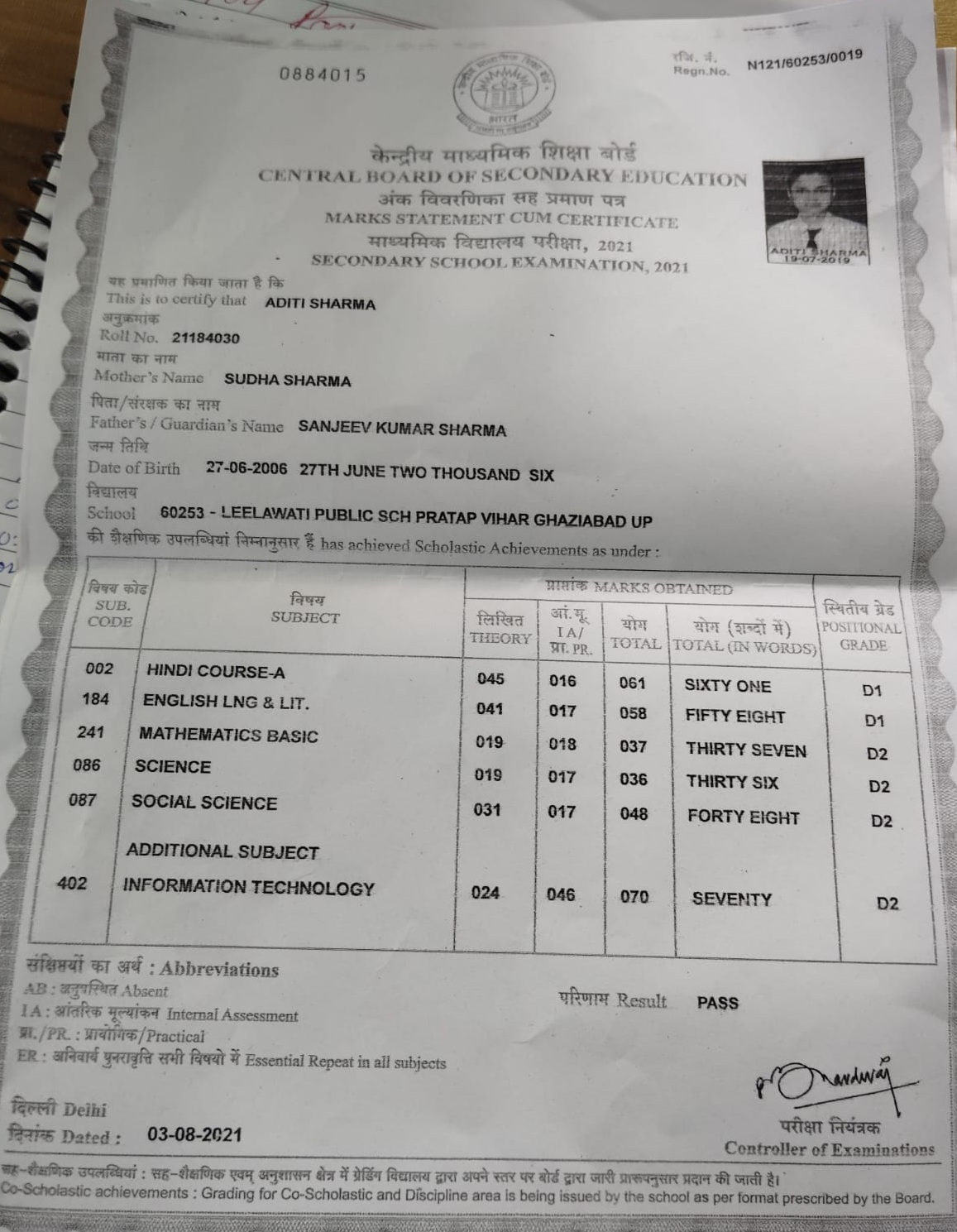 | Exam | Full Marks | Pass Marks | Marks Obtained |