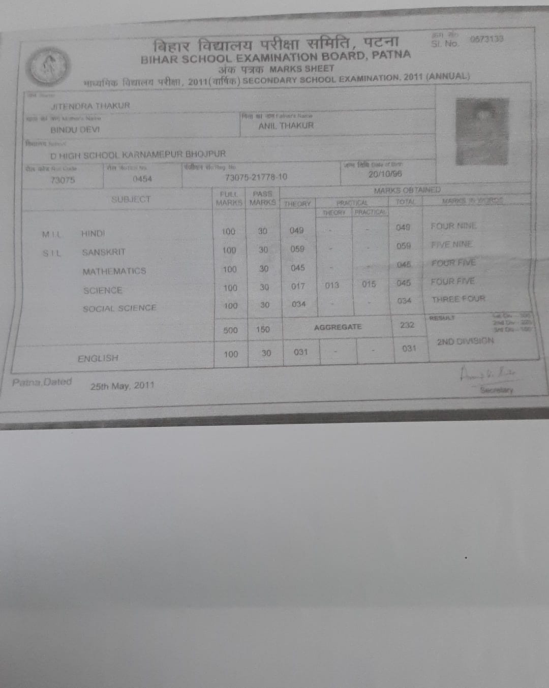 | Exam | Full Marks | Pass Marks | Marks Obtained |
