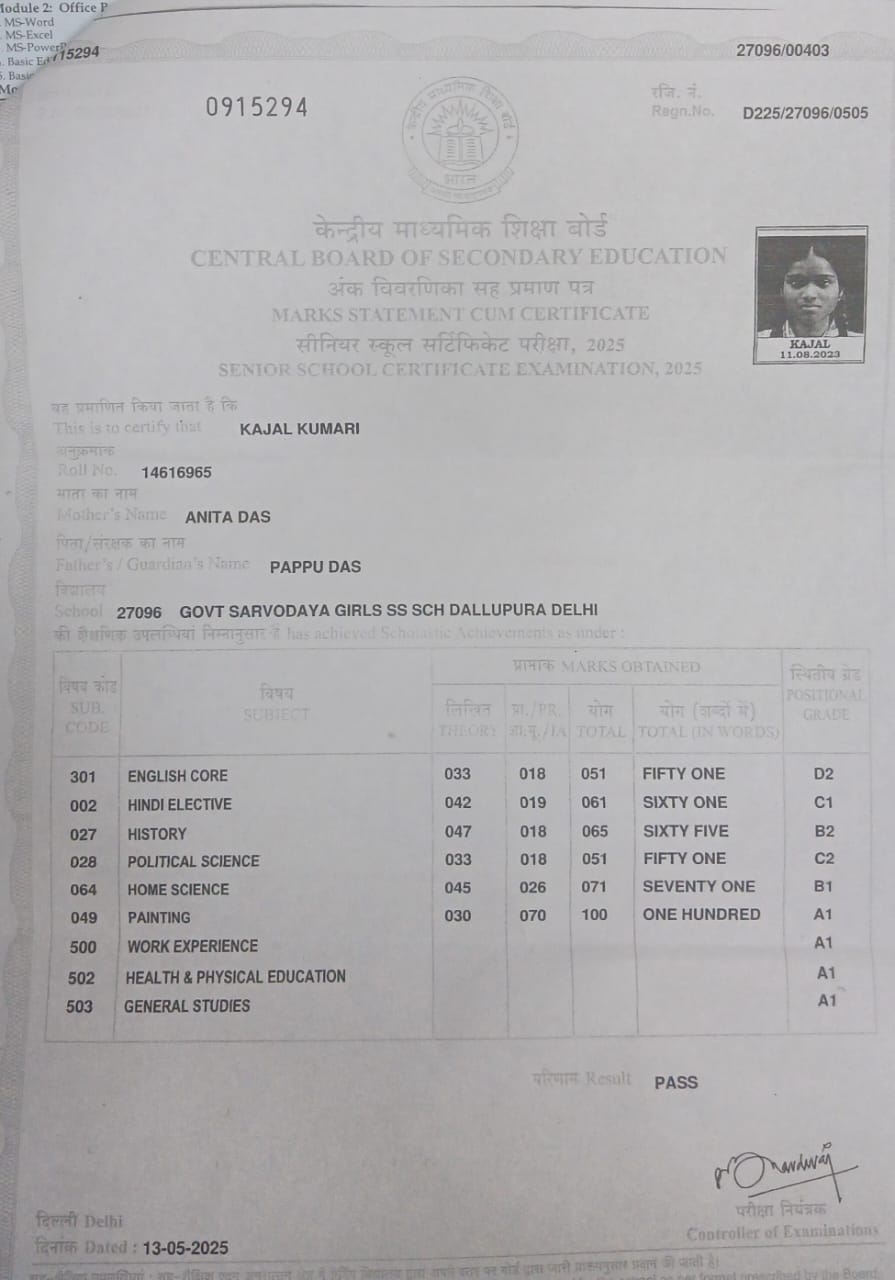 | Exam | Full Marks | Pass Marks | Marks Obtained |