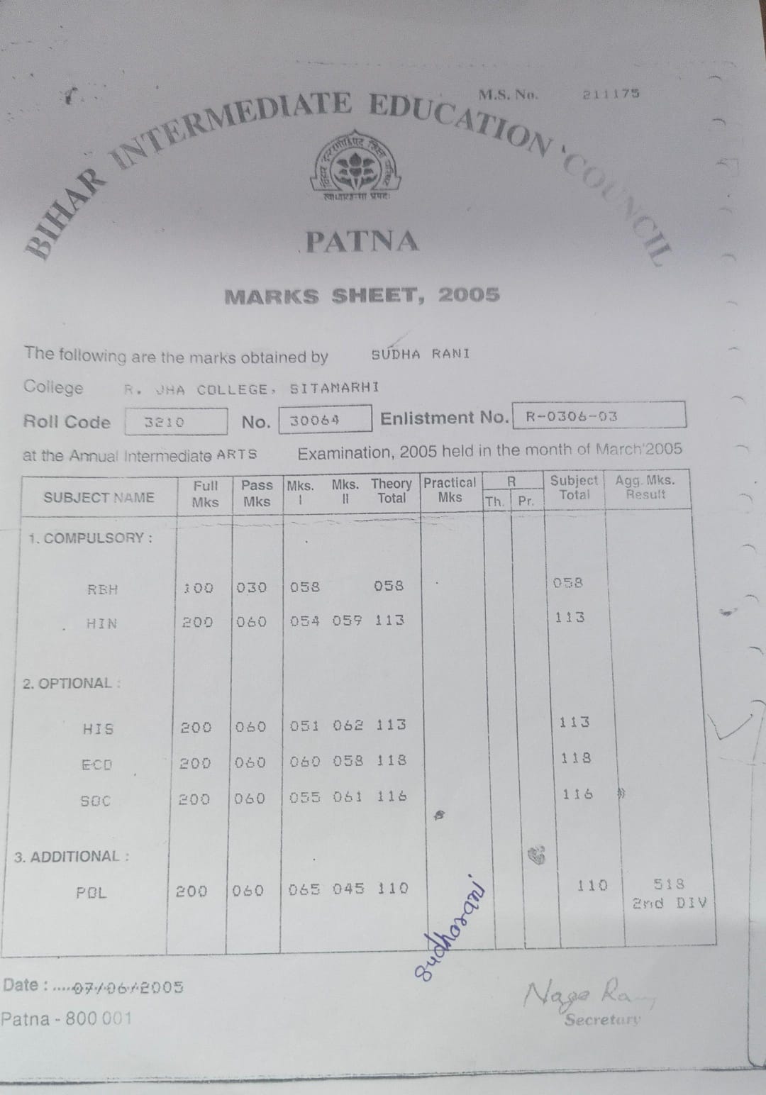 | Exam | Full Marks | Pass Marks | Marks Obtained |