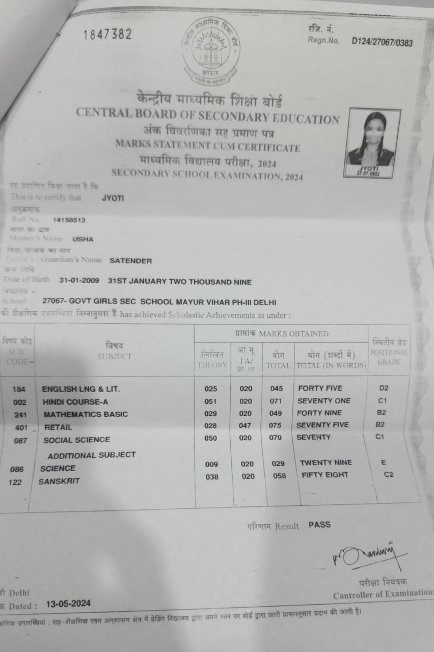 | Exam | Full Marks | Pass Marks | Marks Obtained |