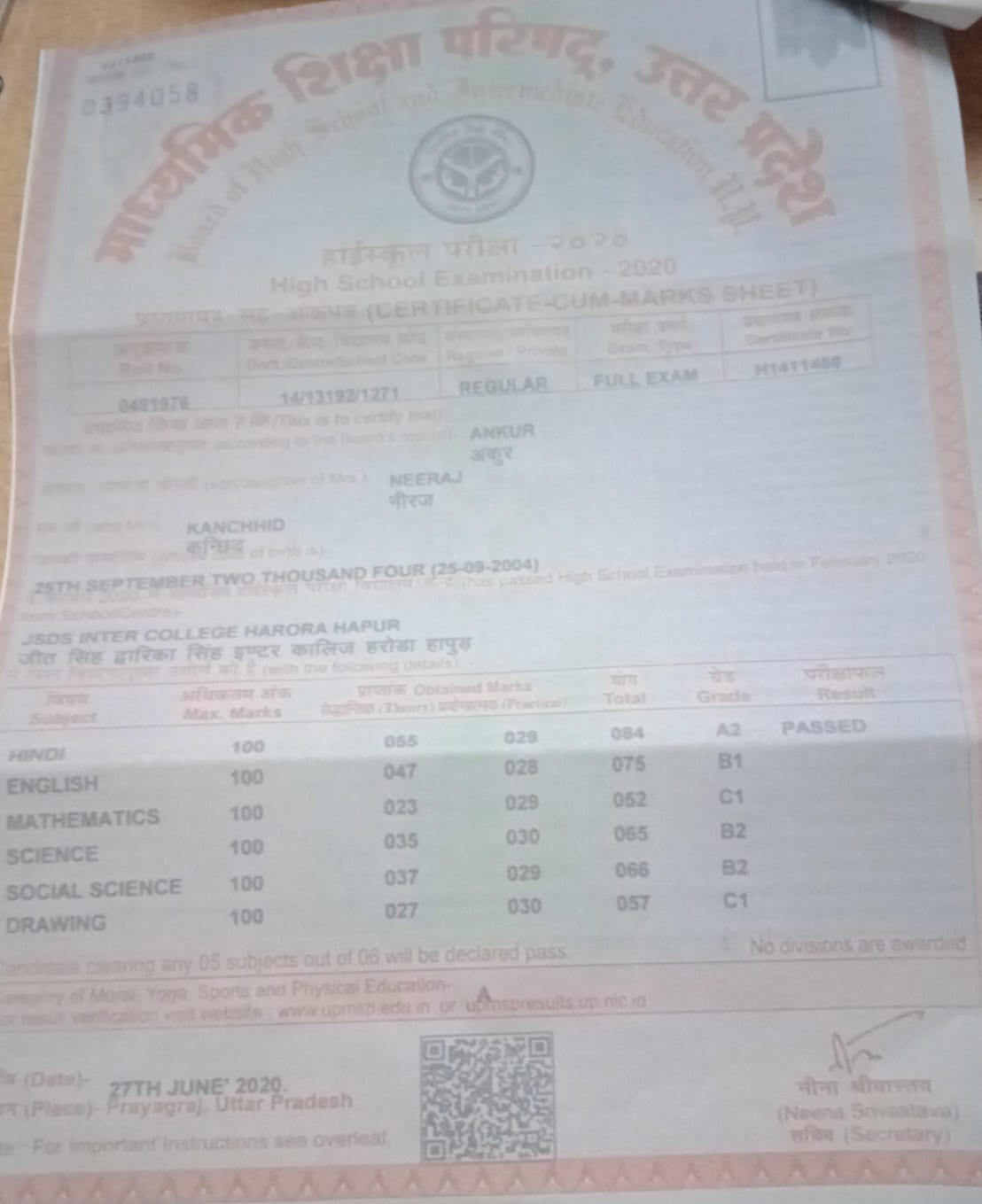 | Exam | Full Marks | Pass Marks | Marks Obtained |