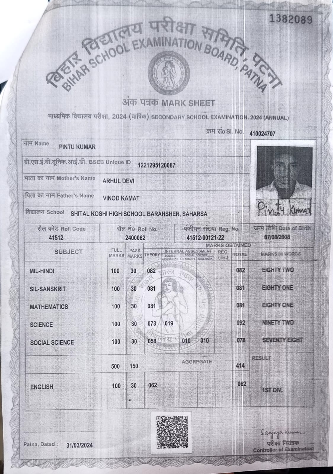 | Exam | Full Marks | Pass Marks | Marks Obtained |