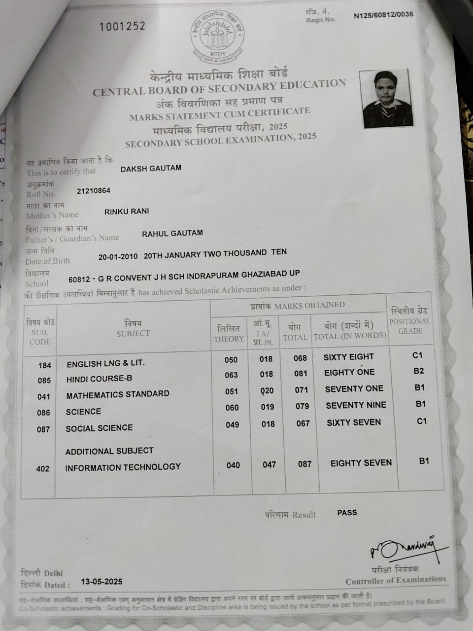 | Exam | Full Marks | Pass Marks | Marks Obtained |