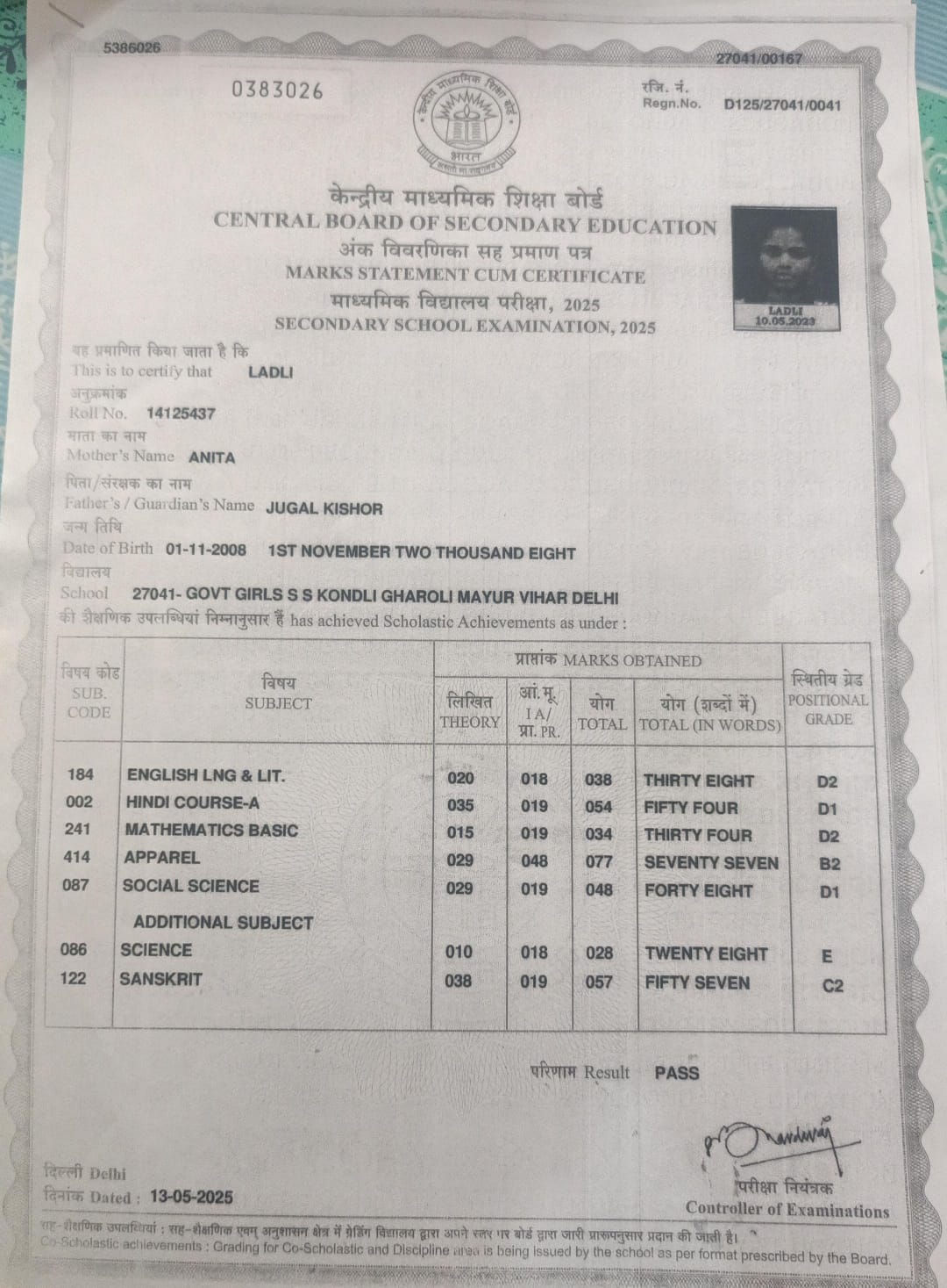 | Exam | Full Marks | Pass Marks | Marks Obtained |