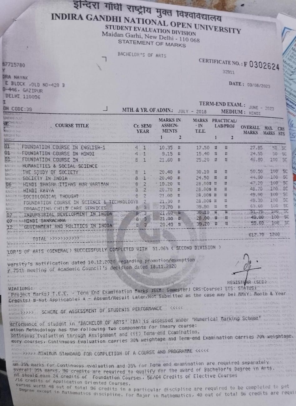 | Exam | Full Marks | Pass Marks | Marks Obtained |