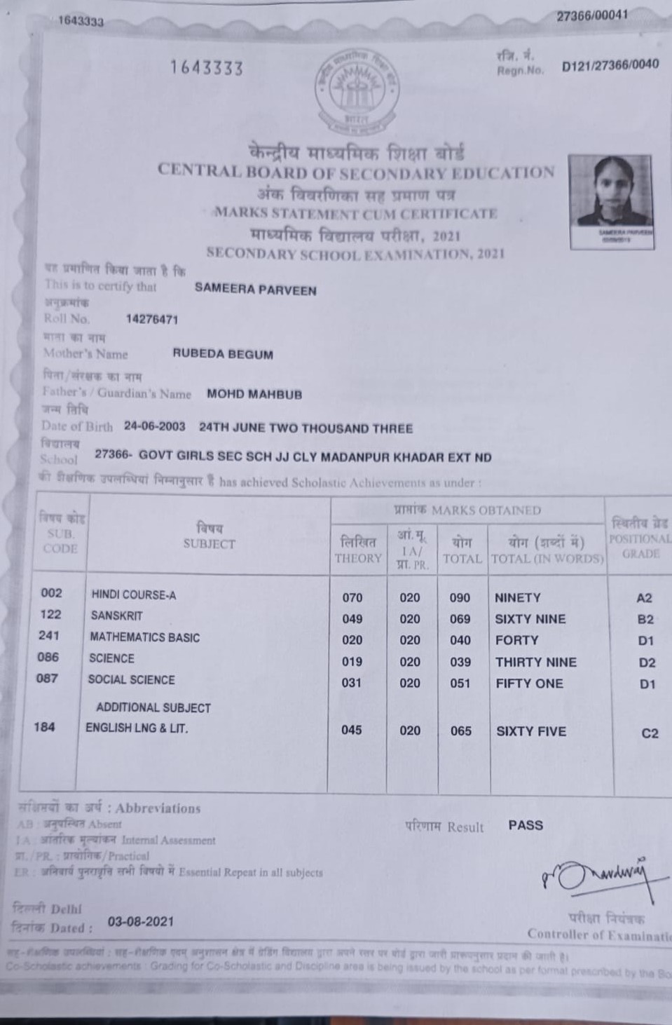 | : | Madanpur Khadar, Delhi-76, New Delhi | |