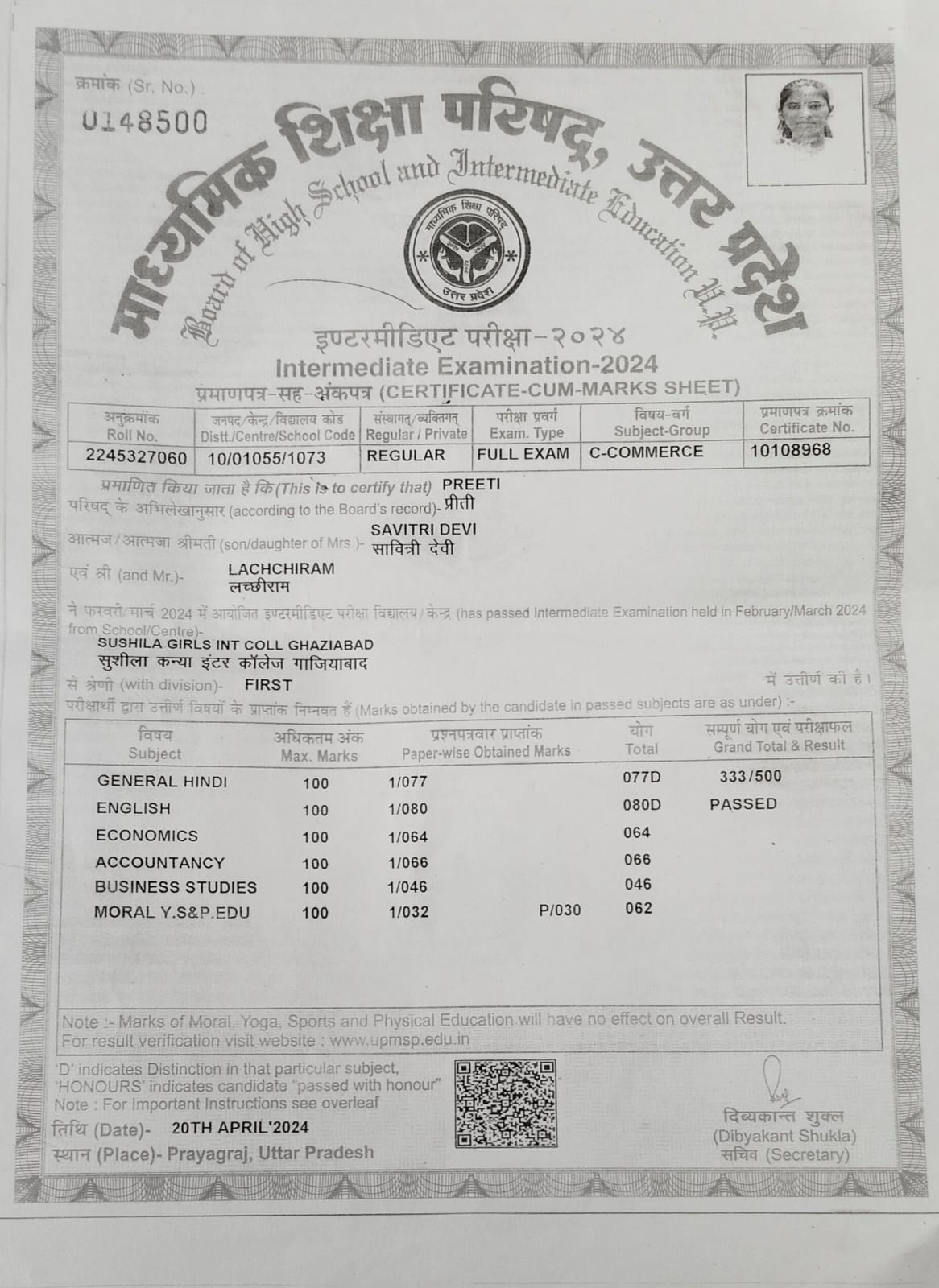 | Exam | Full Marks | Pass Marks | Marks Obtained |