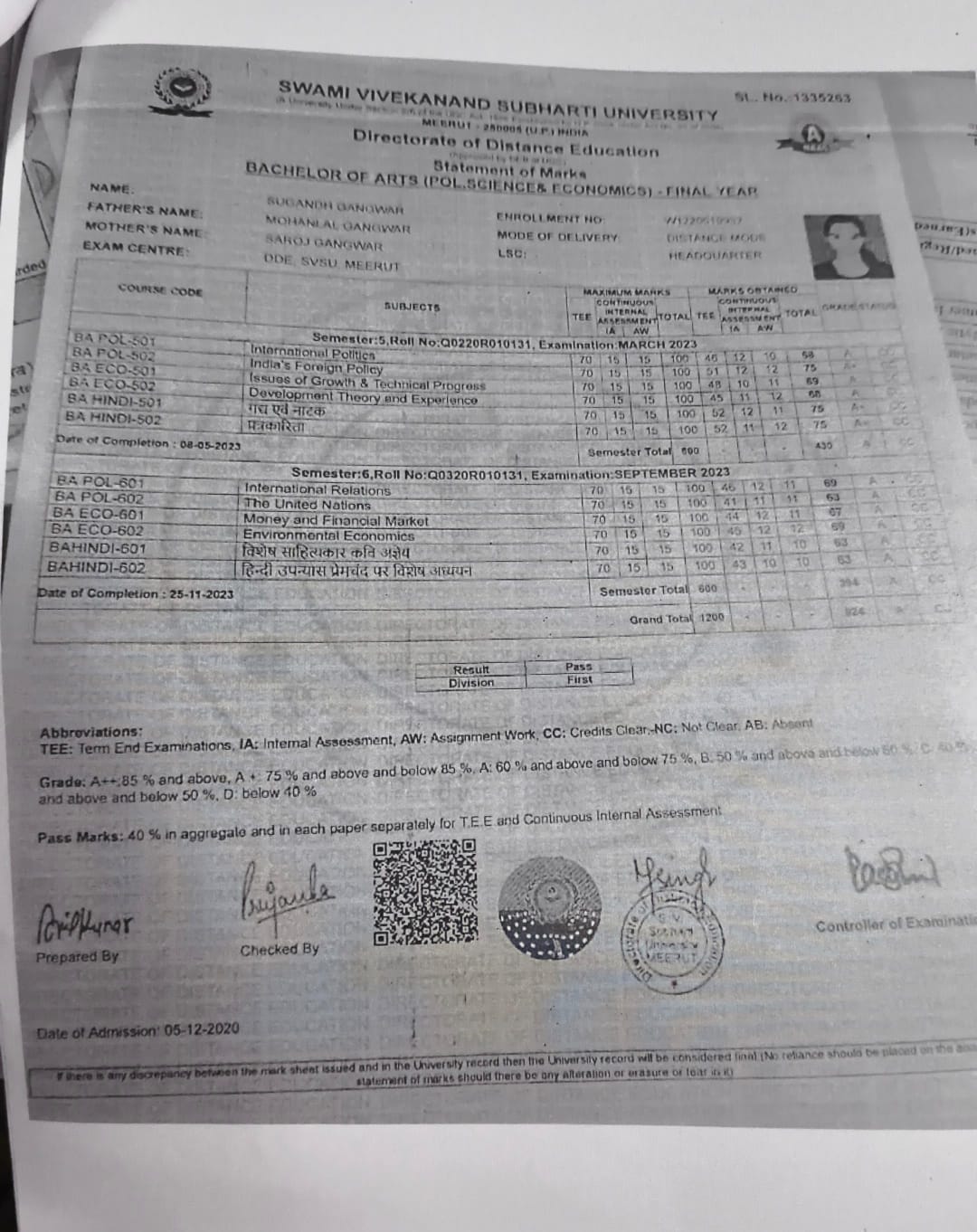 | Exam | Full Marks | Pass Marks | Marks Obtained |