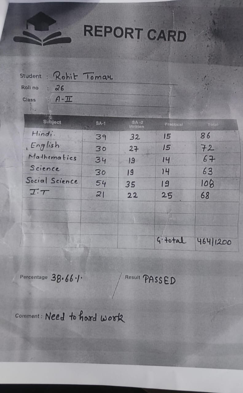 | Exam | Full Marks | Pass Marks | Marks Obtained |