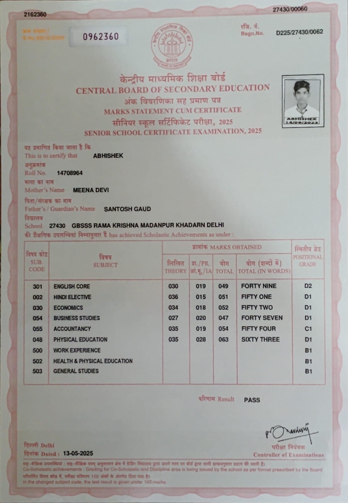 | Exam | Full Marks | Pass Marks | Marks Obtained |