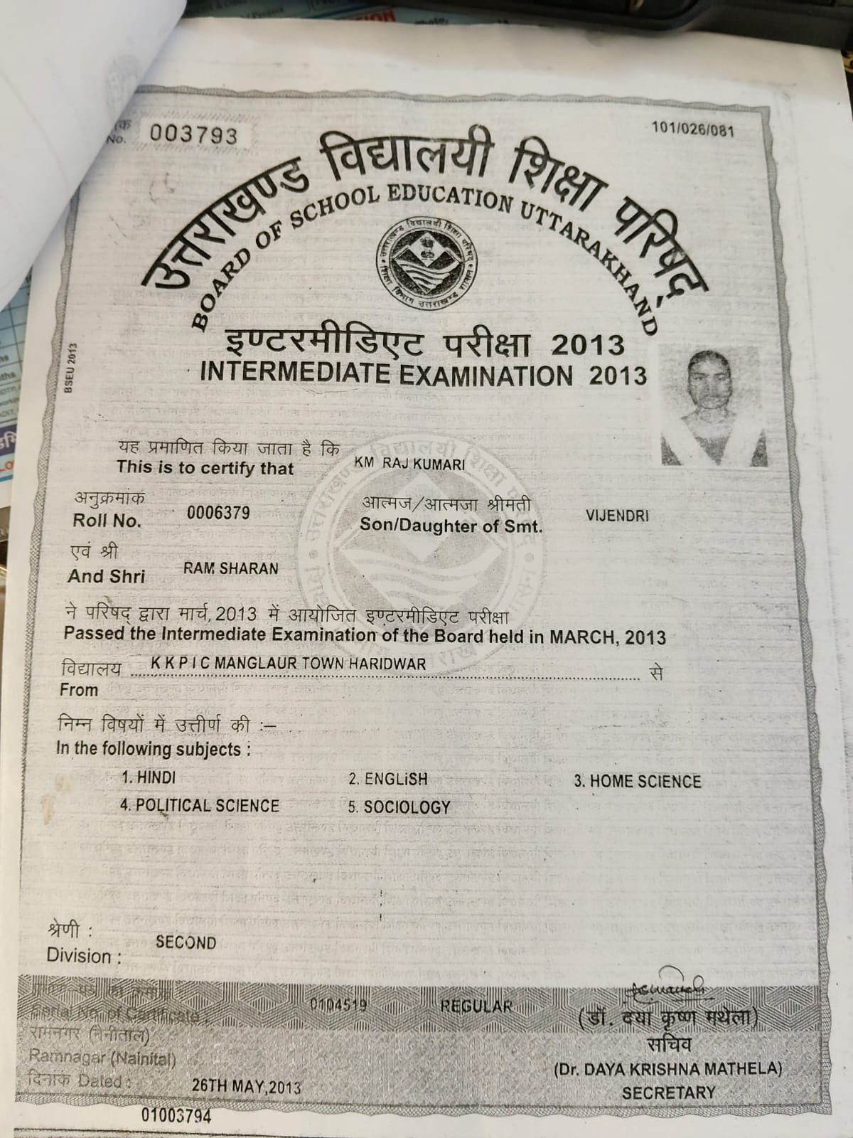 | Exam | Full Marks | Pass Marks | Marks Obtained |
