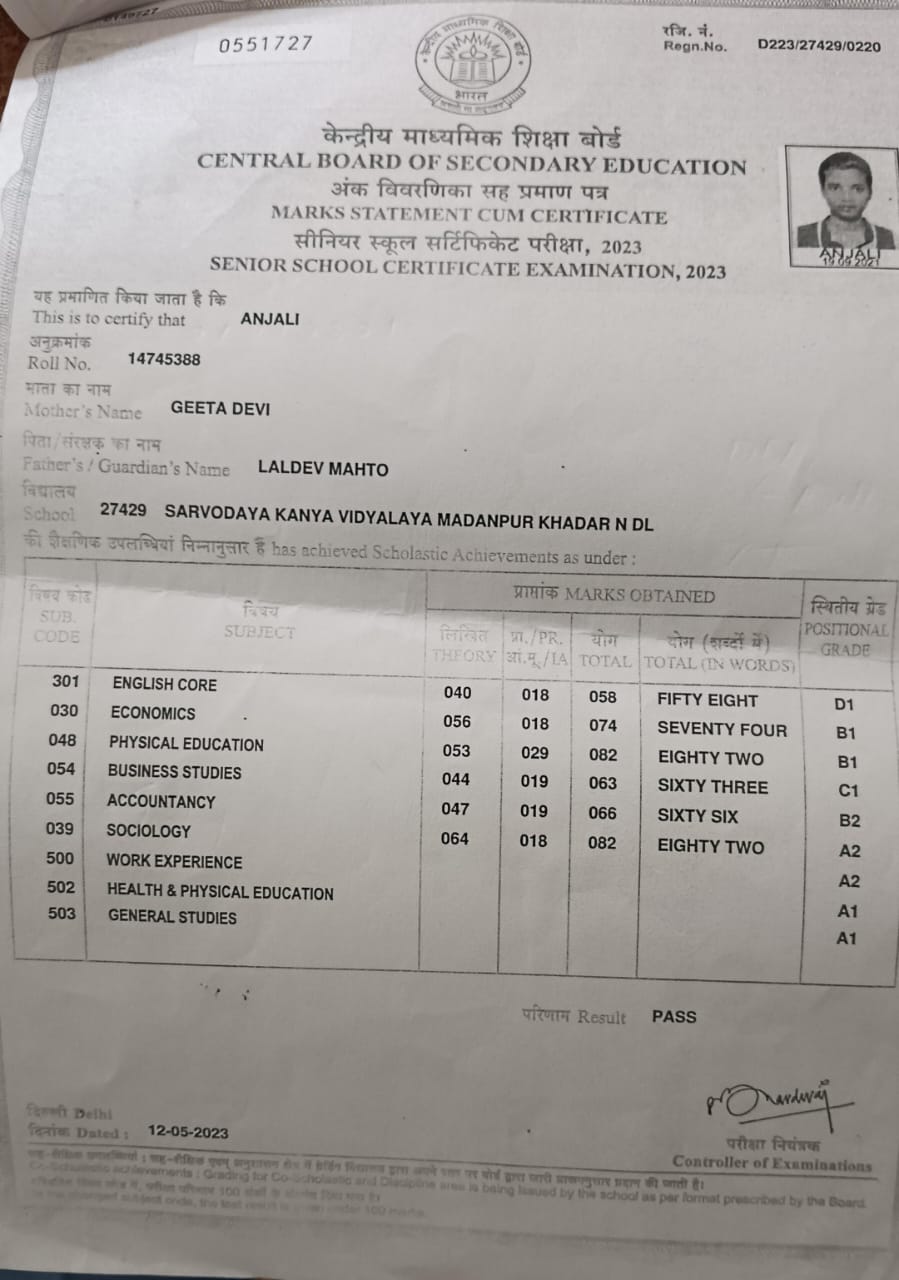 | Exam | Full Marks | Pass Marks | Marks Obtained |