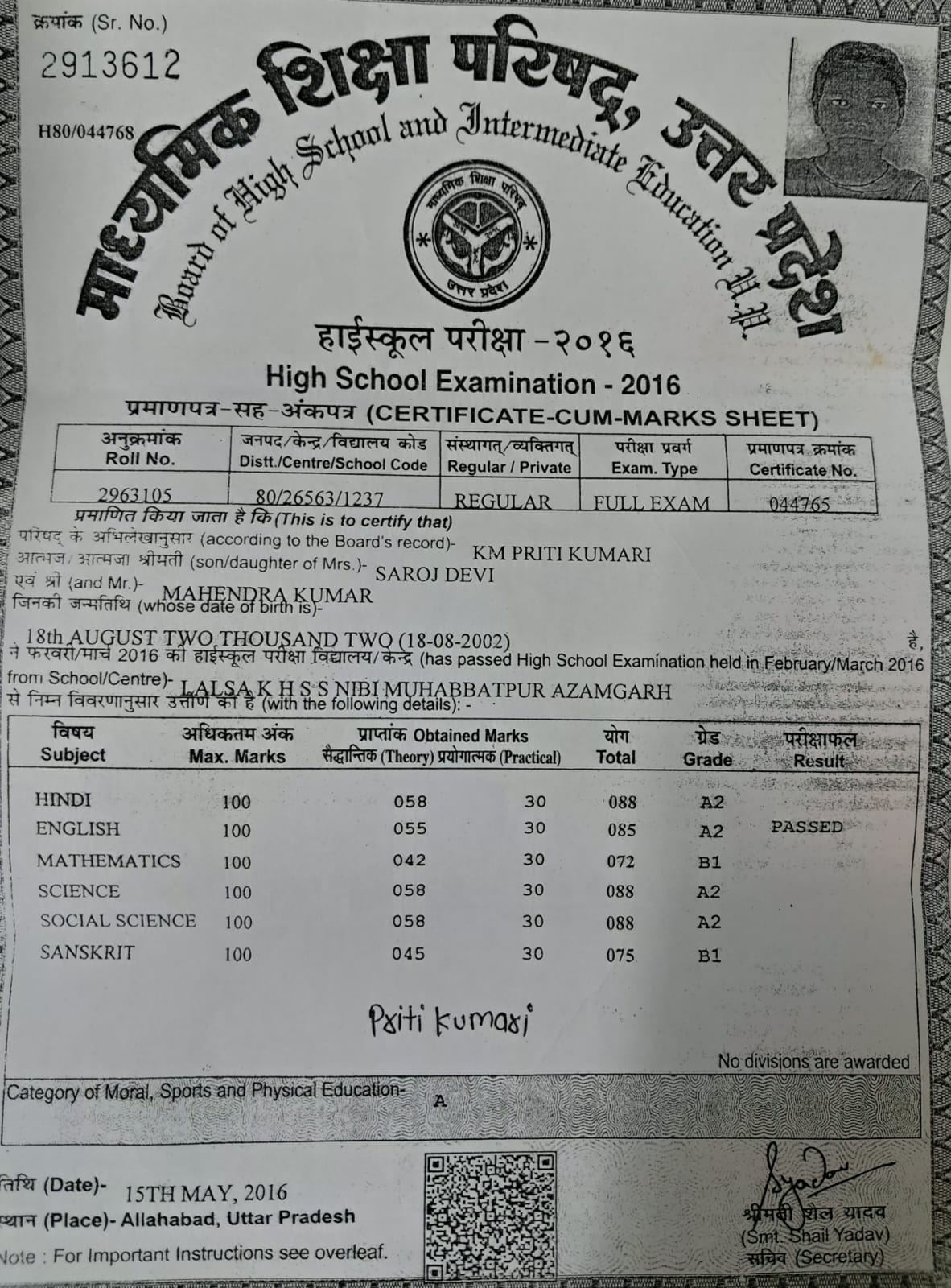 | Exam | Full Marks | Pass Marks | Marks Obtained |