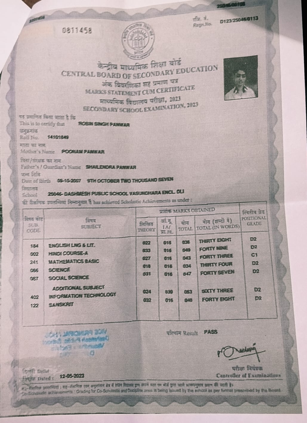 | Exam | Full Marks | Pass Marks | Marks Obtained |