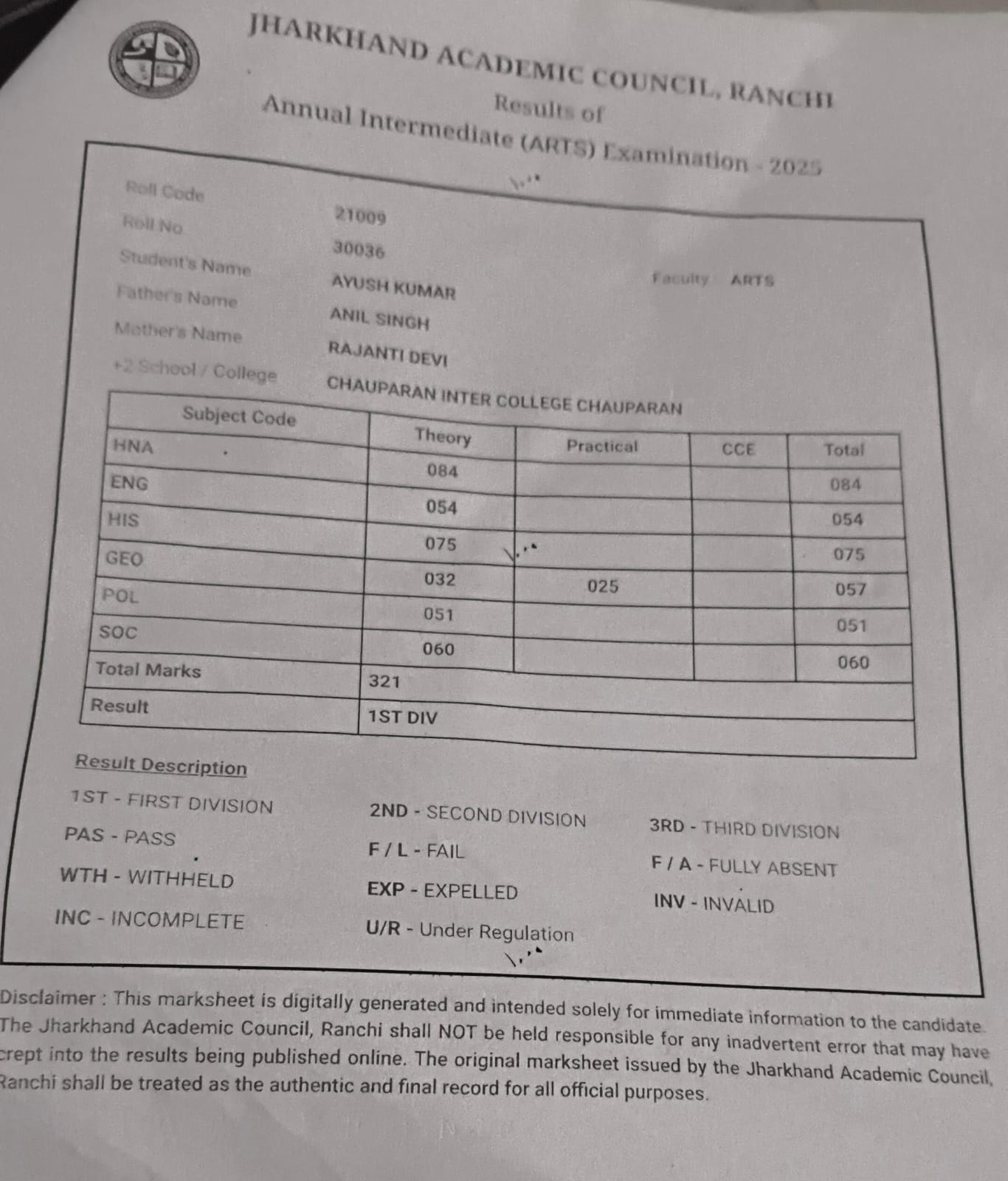 | Exam | Full Marks | Pass Marks | Marks Obtained |