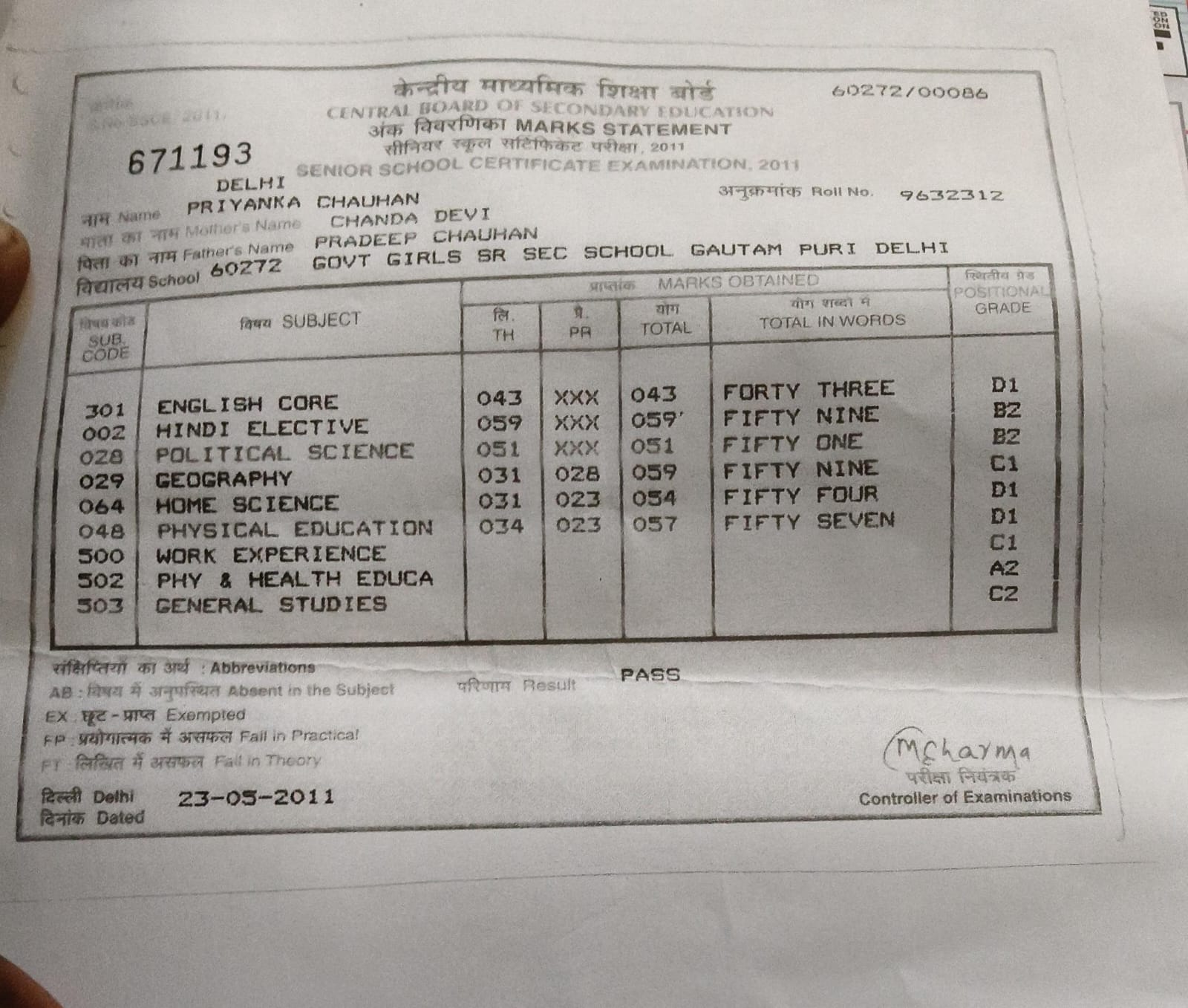 | Exam | Full Marks | Pass Marks | Marks Obtained |