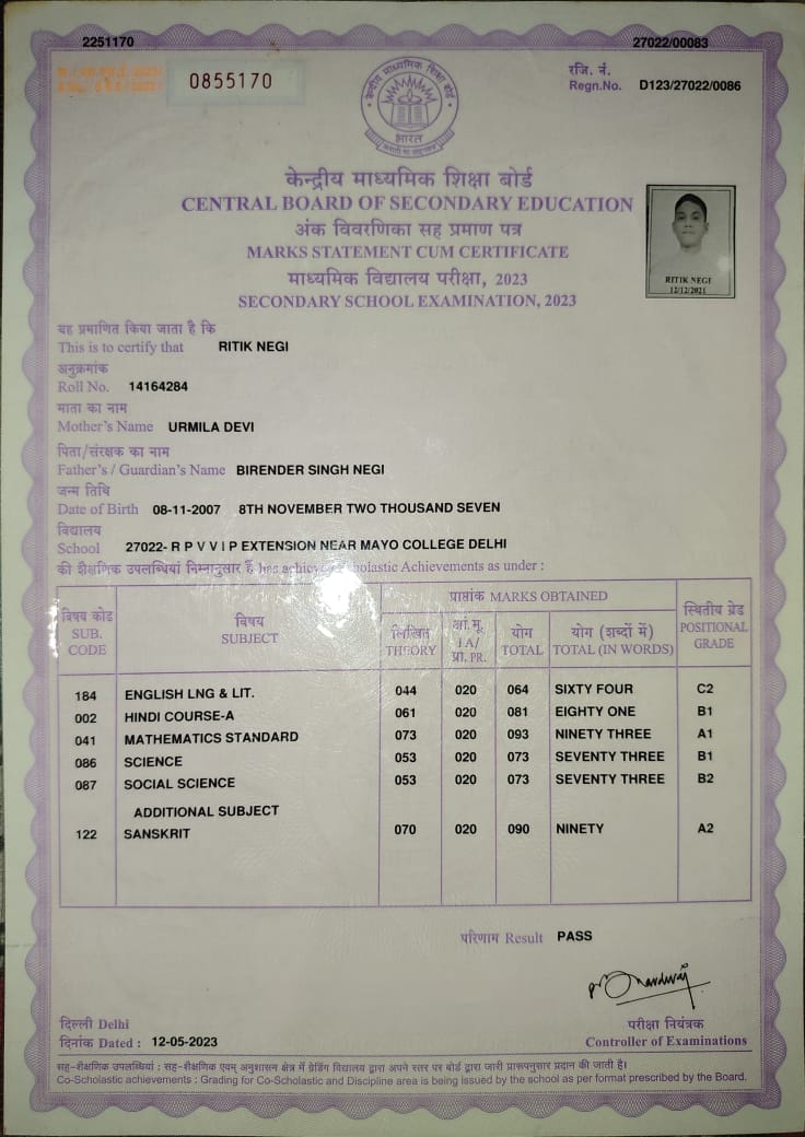 | Exam | Full Marks | Pass Marks | Marks Obtained |