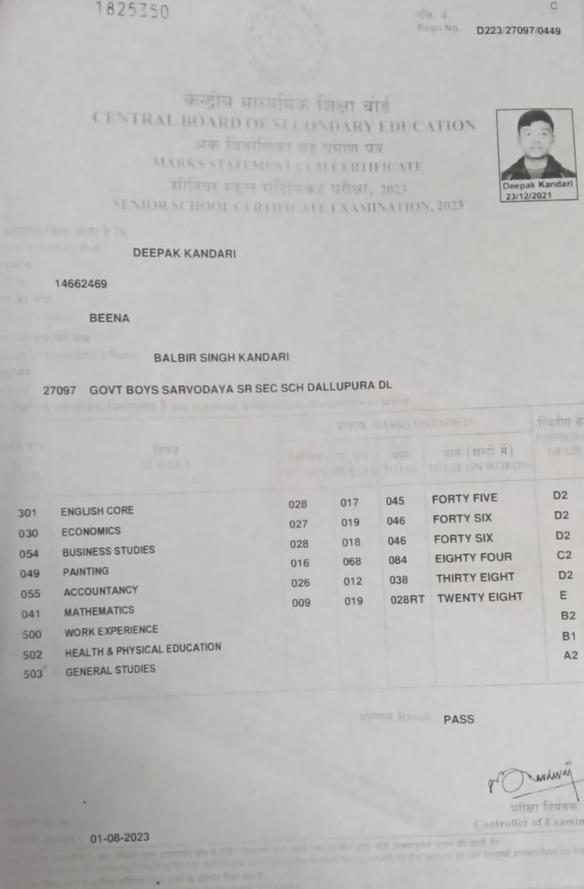 | Exam | Full Marks | Pass Marks | Marks Obtained |