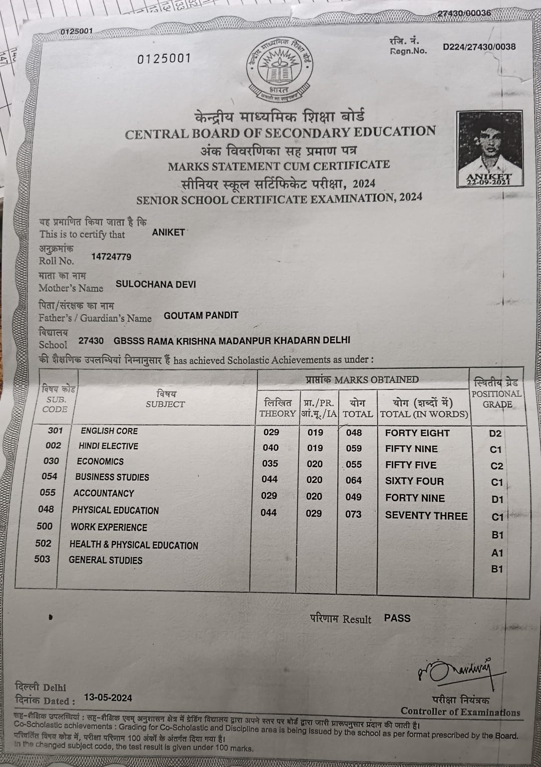 | Exam | Full Marks | Pass Marks | Marks Obtained |