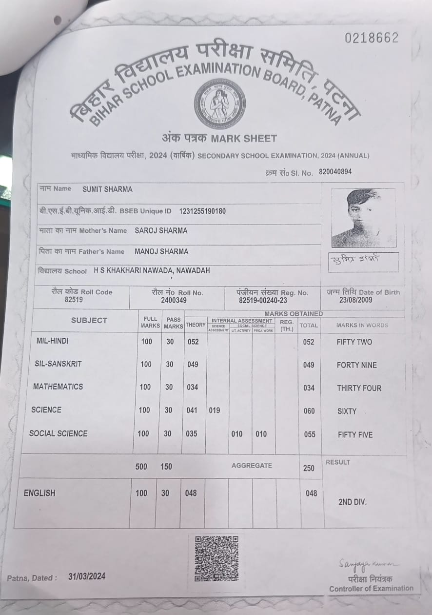 | Exam | Full Marks | Pass Marks | Marks Obtained |