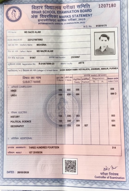 | Exam | Full Marks | Pass Marks | Marks Obtained |