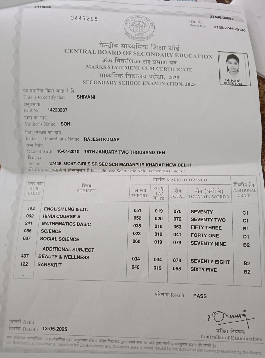 | Exam | Full Marks | Pass Marks | Marks Obtained |