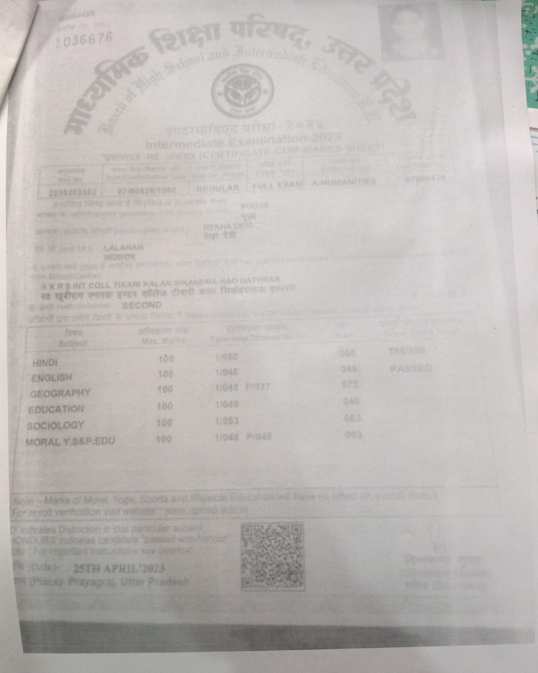 | Exam | Full Marks | Pass Marks | Marks Obtained |