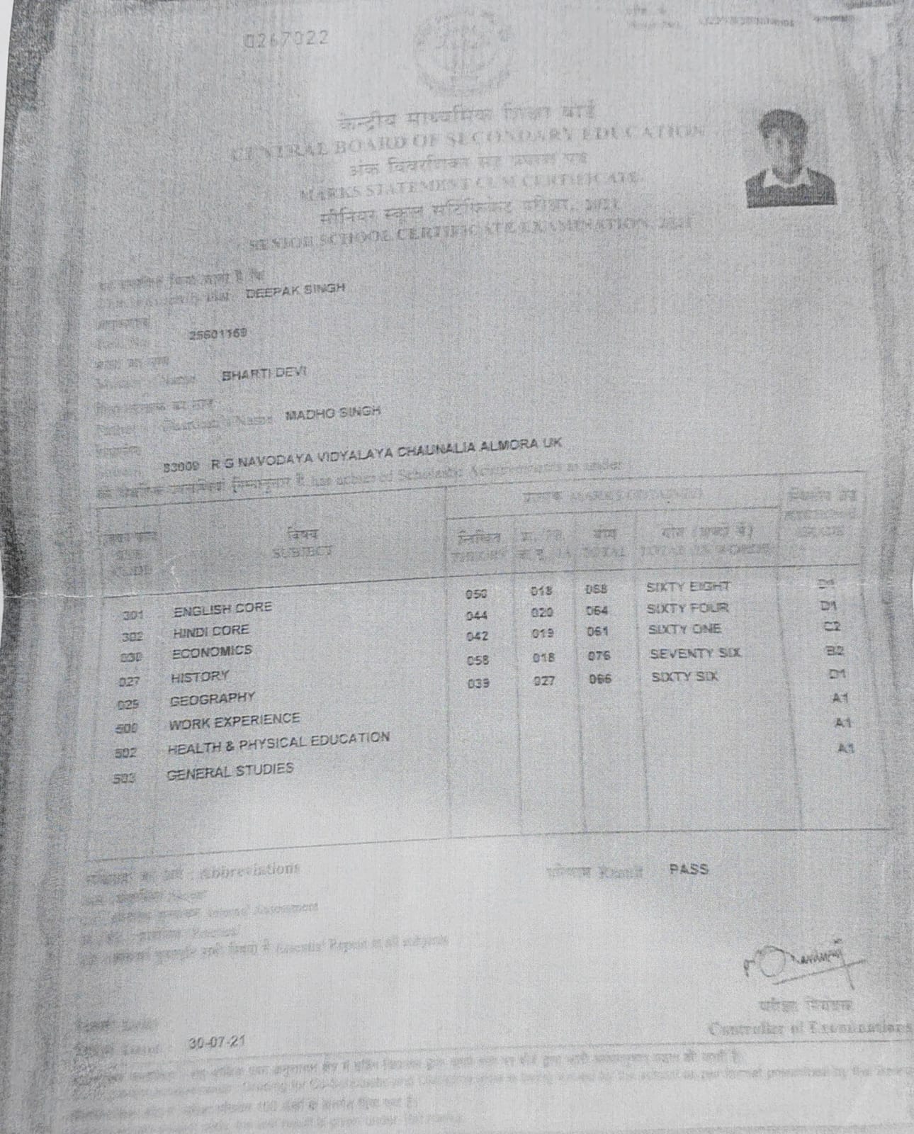 | Exam | Full Marks | Pass Marks | Marks Obtained |