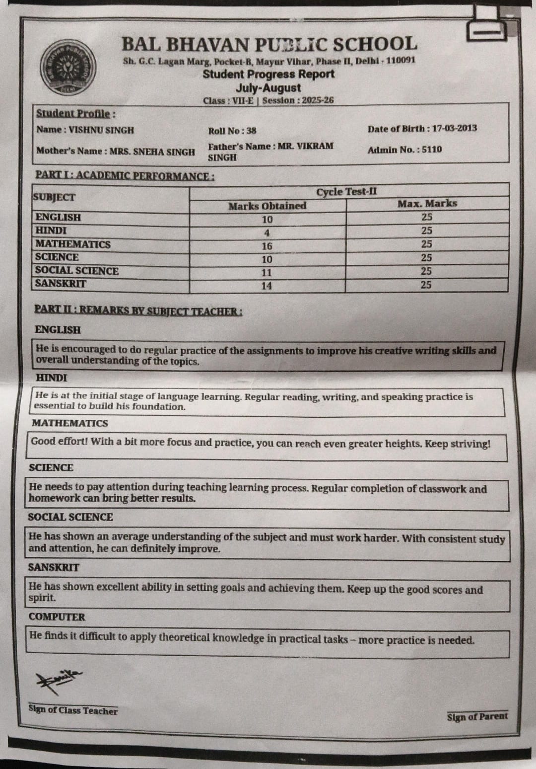 | Exam | Full Marks | Pass Marks | Marks Obtained |