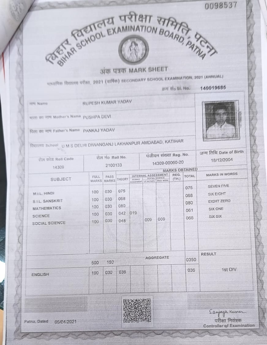 | Exam | Full Marks | Pass Marks | Marks Obtained |