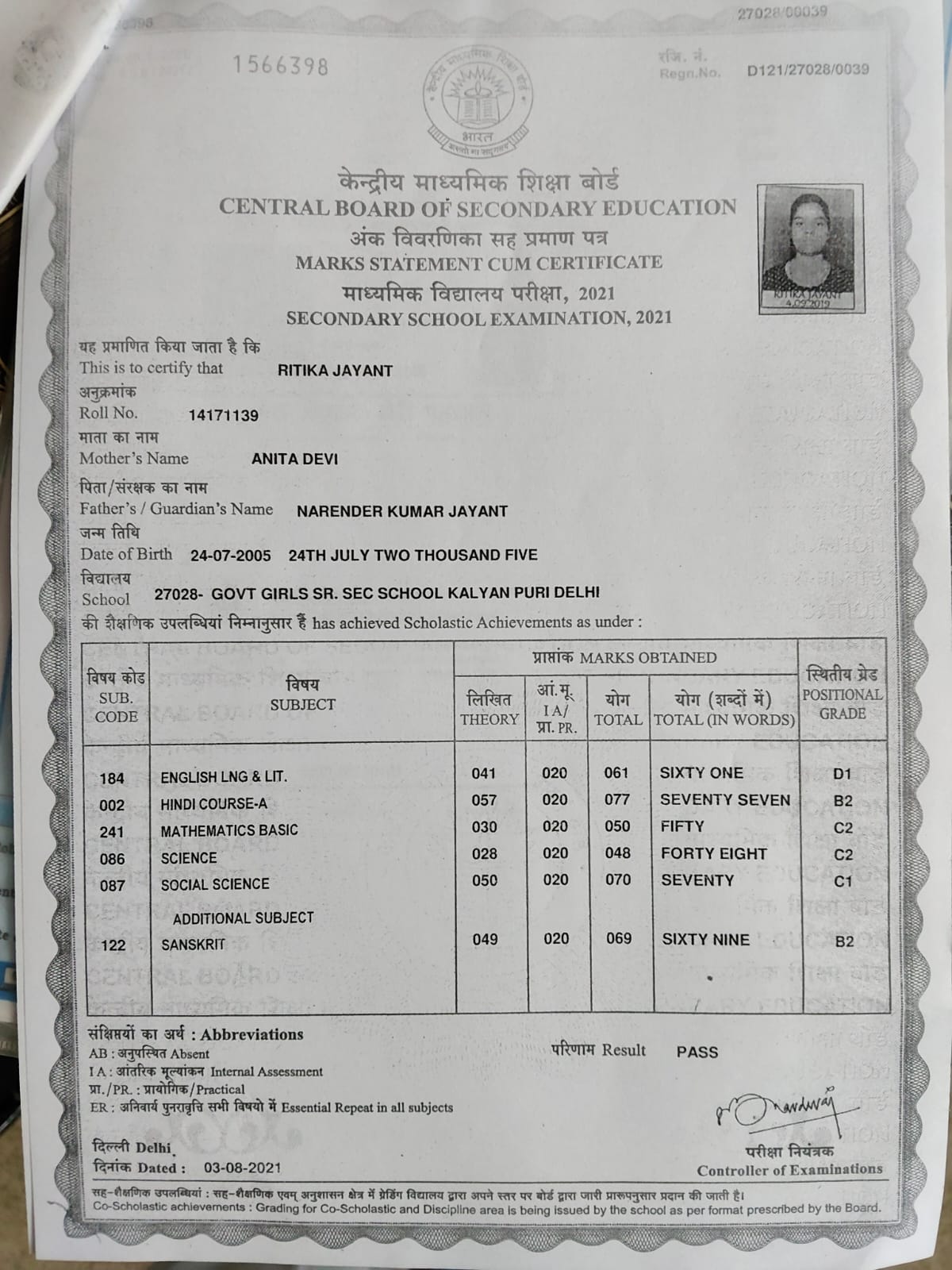 | Exam | Full Marks | Pass Marks | Marks Obtained |