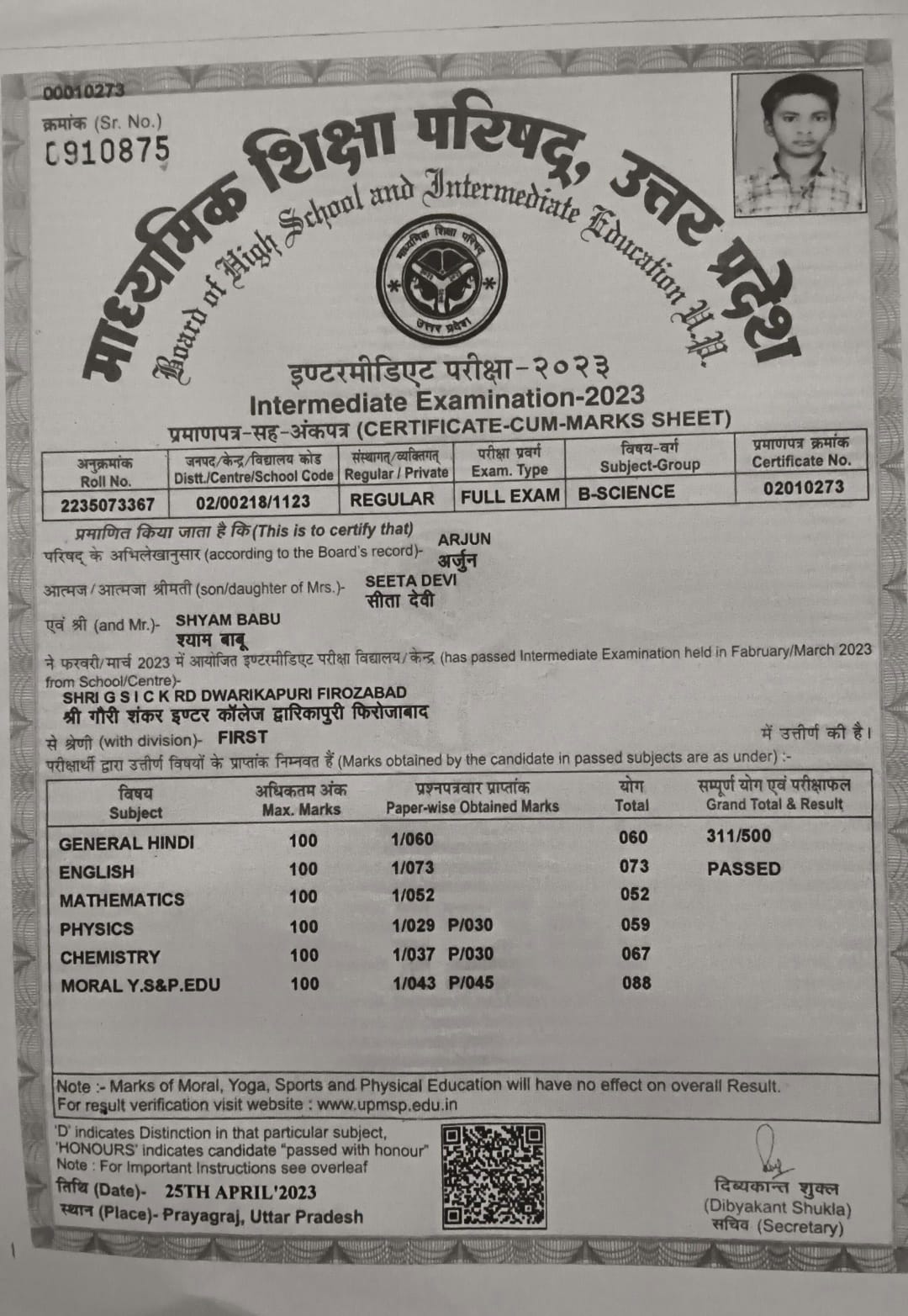 | Exam | Full Marks | Pass Marks | Marks Obtained |