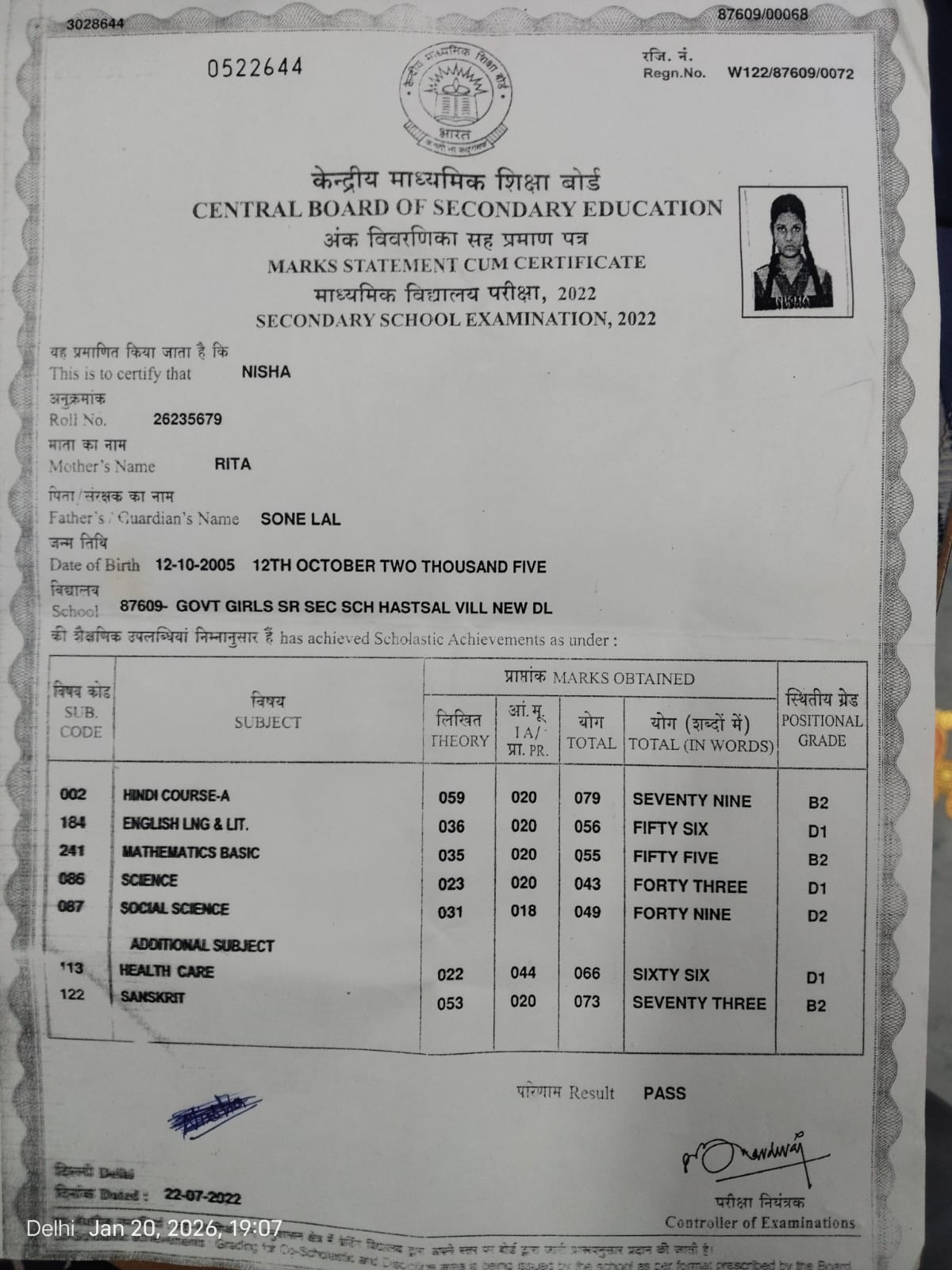| Exam | Full Marks | Pass Marks | Marks Obtained |