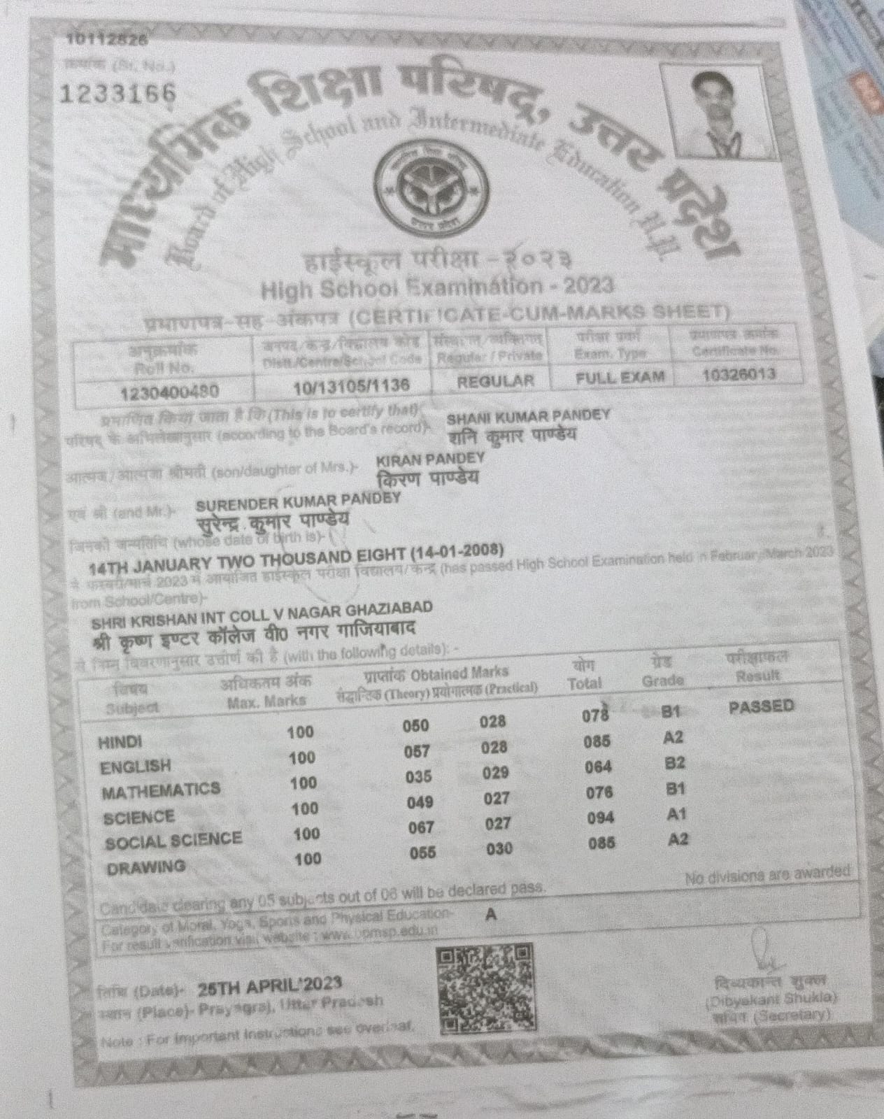| Exam | Full Marks | Pass Marks | Marks Obtained |