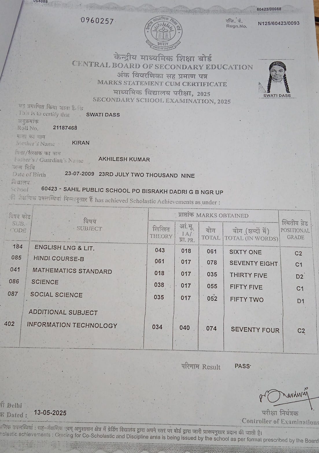 | Exam | Full Marks | Pass Marks | Marks Obtained |