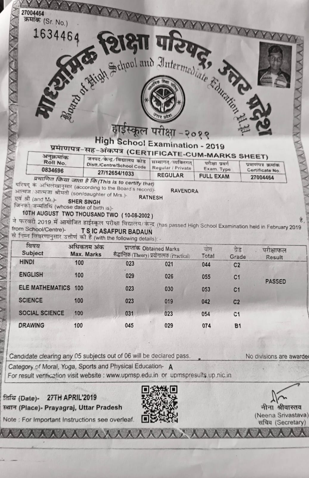| Exam | Full Marks | Pass Marks | Marks Obtained |