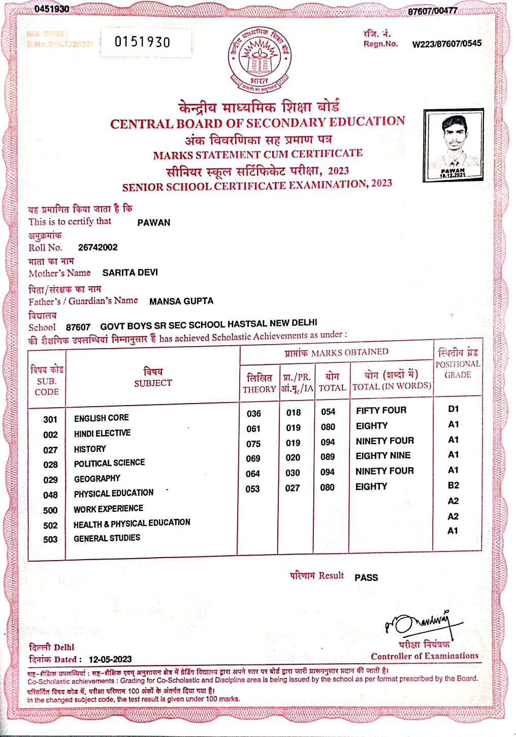 | Exam | Full Marks | Pass Marks | Marks Obtained |