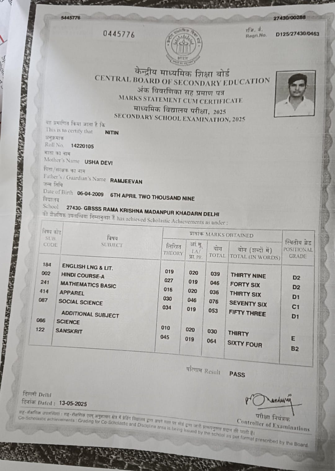 | Exam | Full Marks | Pass Marks | Marks Obtained |