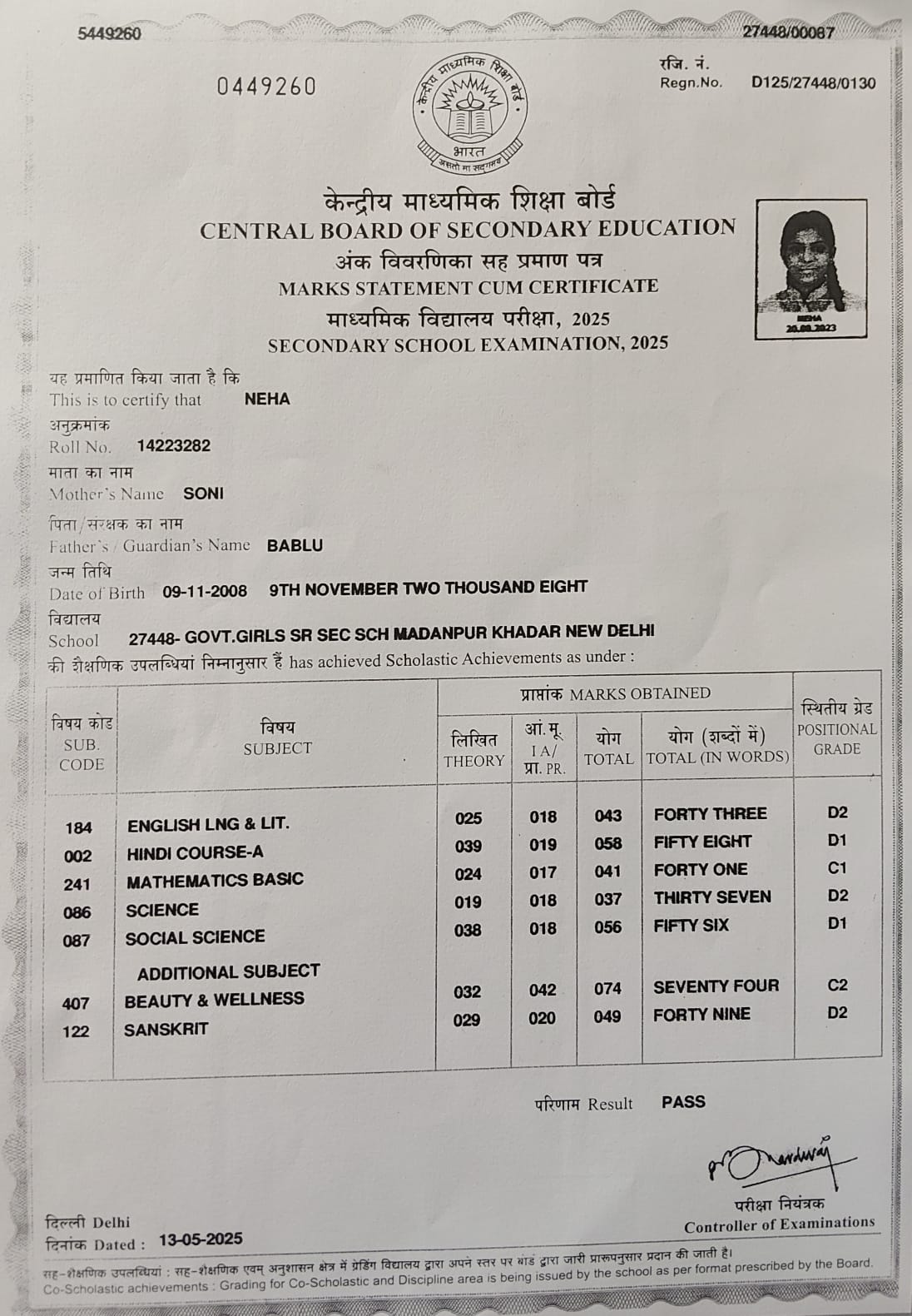 | Exam | Full Marks | Pass Marks | Marks Obtained |