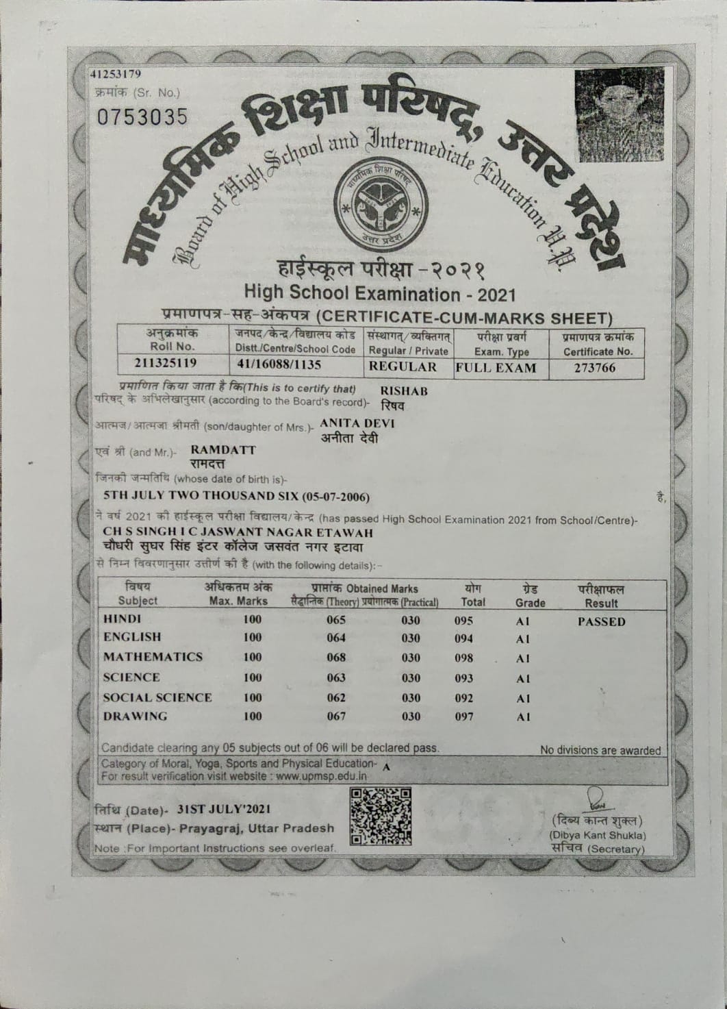 | Exam | Full Marks | Pass Marks | Marks Obtained |