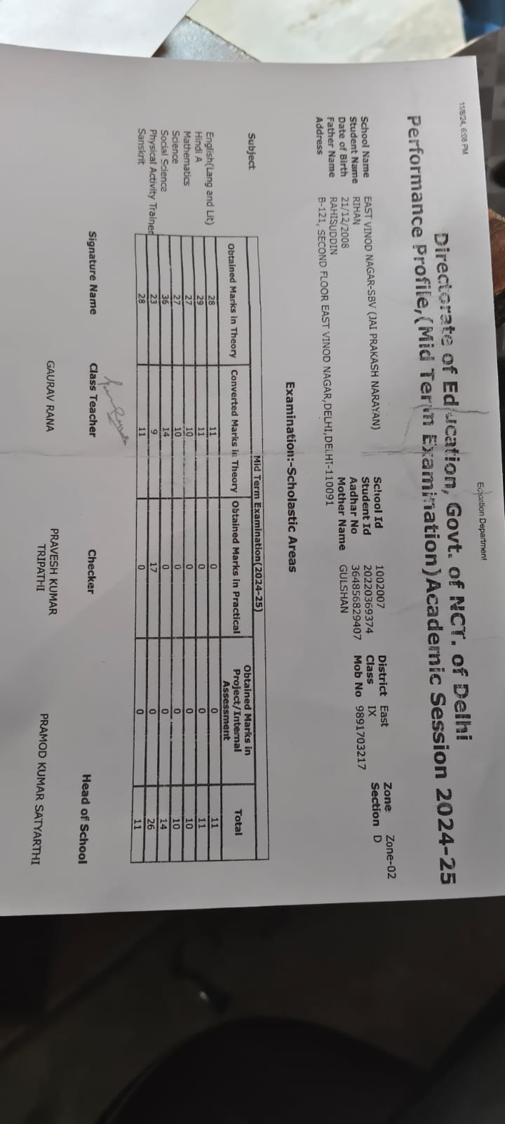 | Exam | Full Marks | Pass Marks | Marks Obtained |