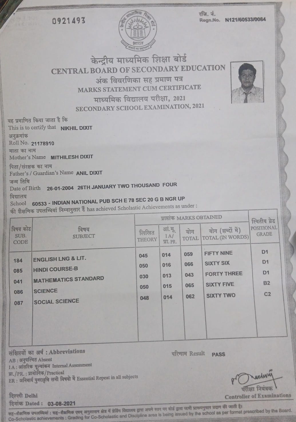 | Exam | Full Marks | Pass Marks | Marks Obtained |