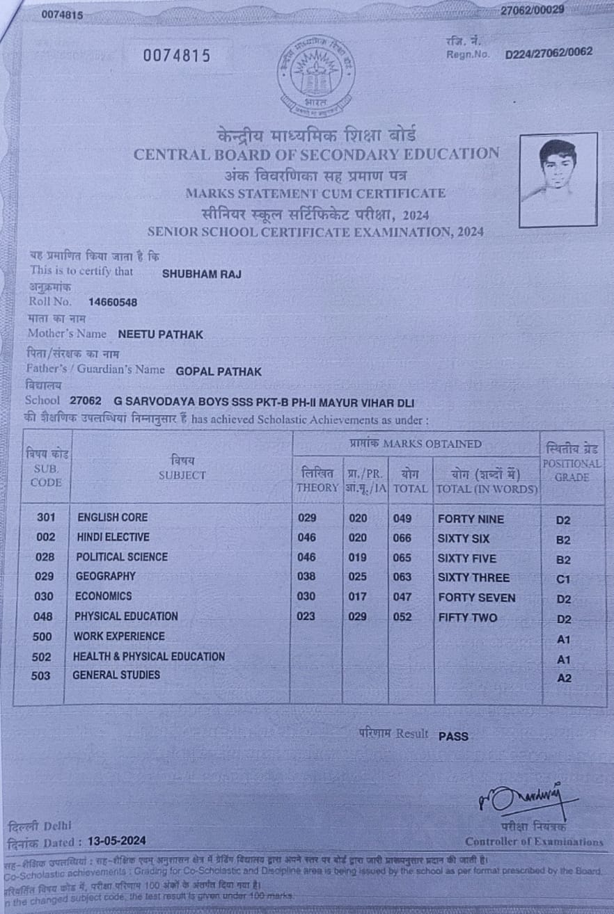 | Exam | Full Marks | Pass Marks | Marks Obtained |