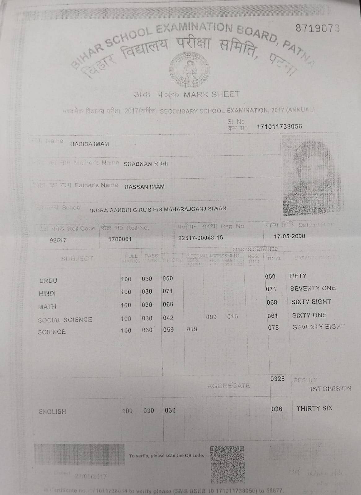 | Exam | Full Marks | Pass Marks | Marks Obtained |